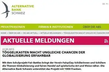 Jeden Monat unterstützt die Alternative Bank Schweiz (ABS) ein Crowdify Projekt, das sozial oder ökologische nachhaltig ist und sich für eine bessere Welt einsetzt. Den Zustupf für den Monat Mai hat das Projekt „Fair Battles Animation“ erhalten.