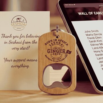 Ein herzliches Dankeschön + Ihr Name auf unserer digitalen “Wall of Early Supporters” auf unserer Website. Ausserdem erhalten Sie einen Seshoai-Flaschenöffner im Markenstil. Der Versand erfolgt ausschliesslich innerhalb der Schweiz und wird direkt zu Ihnen nach Hause geliefert (Versandkosten inklusive).