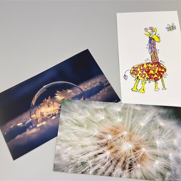 Eine Postkarte aus dem allani Kinderhospiz, ob Naturaufnahme oder Kinderzeichnung. Ein kleines Stück Herzwärme als Dankeschön für deine Unterstützung.