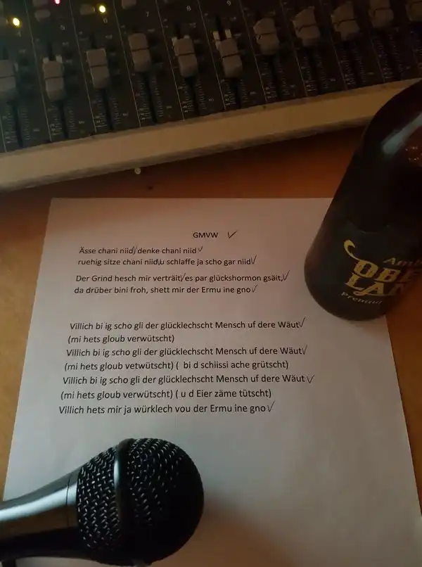 Aui Schlagzügschleg, Saitäzupfer und Stimmbandvibrationä si im Chaschtä und d Ufnahmä si offiziell abgschlossä. Ab iz geits mitem Mix und Mastering witer.