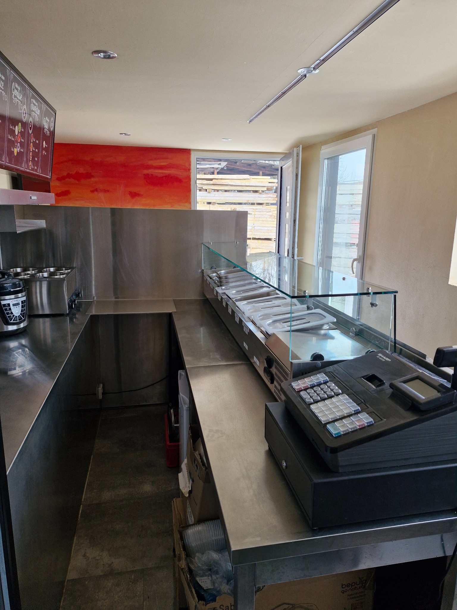 Ich plane Morgens um 8.30 Uhr aufzumachen und um 14 Uhr wieder zu schliessen. Bei Bedarf können die Öffnungszeiten angepasst werden. Eine Erweiterung bis 16 Uhr ist denkbar. Verkaufen möchte ich Morgens Gipfeli, Lachsgipfeli und Eingeklemmte. Zusätzlich wird es Pancakes geben. Optional mit Ei, Speck, Ahornsirup oder Schoggi. Ab 11.30 Uhr können Sie ihr Mittagessen wählen. Es wird ein festes Mittagsmenü geben und eine Vegetarische Alternative. Vorstellbar ist ein Pouletgeschnetzeltes mit Spätzle oder Reis als Alternative. Die Vegi Option wäre hier das Geschnetzelte mit Tofu. Ich orientiere mich hier an dem Markt. Jeden Tag wird gewechselt. Der Container ist ausserdem für die Herstellung von Burritos eingerichtet. Ich werde auch den Verkauf davon in Betracht ziehen.