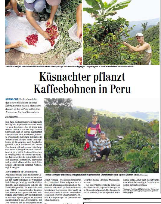 Ich bin ein 39jährigiger Kaffeeliebhaber aus der Schweiz. Vor fast 10 Jahren lebte ich für längere Zeit in Südamerika und habe dort die Faszination für die fassettenreiche Kaffeepflanze und deren Veredelung entdeckt. Daraus entwickelte sich der Traum einer nachhaltigen, transparenten Produktion von Gourmet Kaffee. Erst viele Jahre später konnte ich meinen Traum erfüllen und mit meiner peruanischen Frau zusammen erstmals eigenen Kaffee anpflanzen. Dieses Jahr bringen wir das erste Mal Kaffee in die Schweiz.