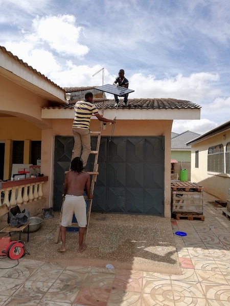 In einem derart sonnigen Land wie Ghana wollen ich und mein Planer und Solarexperte Grâce Pueta durch die Installation einer grösseren Anlage, die unseren Betrieb autonom und ohne Fremdstrom mit Energie versorgen wird, eine Vorbildfunktion übernehmen und afrikanische Firmen und Privatpersonen auf den Geschmack von Solarstrom bringen damit ausrüsten. Auch in Ghana schreitet der Energiehunger voran und es ist wichtig, dafür eine sinnvolle Quelle zu liefern und diese den Menschen vor Augen zu führen. Des weiteren sehen wir eine Möglichkeit, mit einfachen Inselanlagen in den Dörfern Ghanas die Bevölkerung mit einem Grundbedarf an Energie zu versorgen.