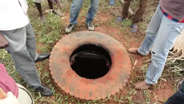 Die ersten Lehmziegel sind breit und der Brunnen gebaut. Jetzt hat es Wasser auf der Baustelle und der Bau des Schulhauses kann beginnen.