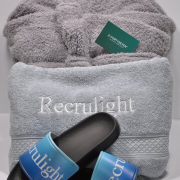 What could be better than relaxing in a spa on cold, dark days? Nothing. That's exactly why we offer you the wellness package. Don't like going to the spa? The package also makes a great gift. Contents: • CHF 50 voucher FORTYSEVEN (Baden AG) • Recrulight bath towel in azure blue, 70 x 140 cm • Recrulight bath slippers; sizes (EU): 36.5, 37.5, 38.5, 39.5, 40.5, 41.5, 43, 44, 44.5, 46, 47, 47.5, 48.5 • Recrulight bathrobe (color may vary from light gray to dark gray); sizes: → M (155-165 cm), length 120 cm, chest circumference 110 cm, shoulder width 56 cm, sleeve length 50 cm → L (165-175 cm), length 125 cm, chest circumference 118 cm, shoulder width 59 cm, sleeve length 51 cm → XL (175-185 cm), length 130 cm, chest circumference 126 cm, shoulder width 61 cm, sleeve length 52 cm We will contact you by email to confirm the correct size of your bathrobe and slippers, so that you can let us know your preferred sizes. Please reply as soon as possible so that we can deliver your package as quickly as possible. Delivery time 4 weeks (longer outside Switzerland)