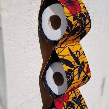 Can be made in different colors and can hold 3-6 toilet papers, made by tailoring students